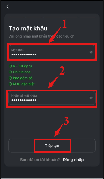 Bước 4: Tạo mật khẩu theo yêu cầu của hệ thống