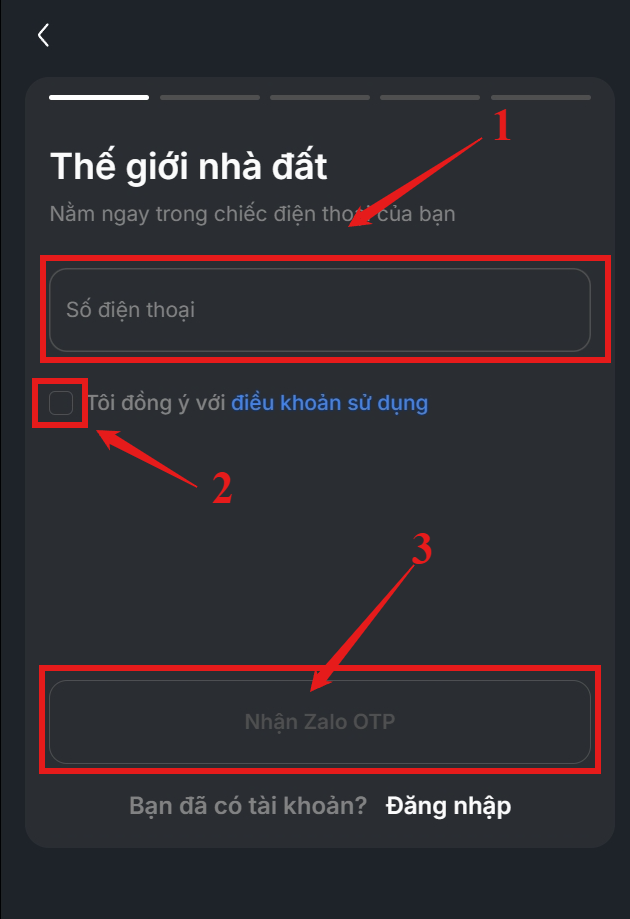 Bước 2: Điền số điện thoại của bạn vào đây (lưu ý số dùng tài khoản Zalo để nhận mã)