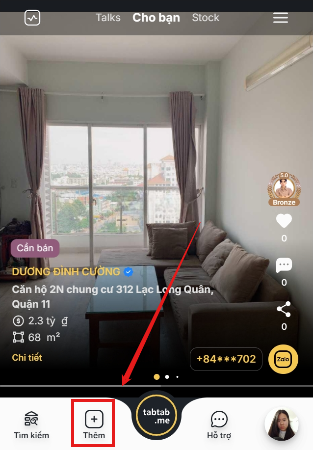 Bước 1: Vào đường link: https://tabtab.me/post. Hoặc nếu đang trong trang của tabtab.me, tiến hành ấn vào biểu tương dấu cộng Thêm.